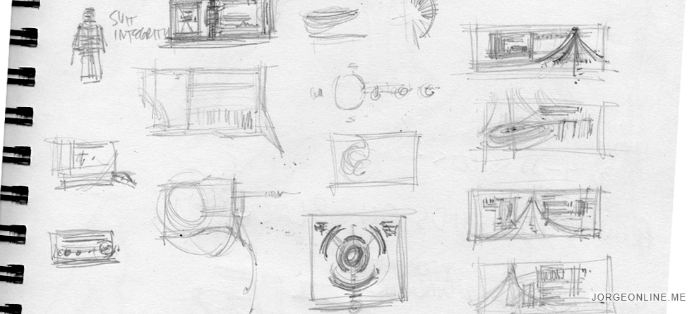 This was the first viewscreen interface seen in the film. The purpose was to show the location of a detonation device within an active volcano. There was also a separate graphic intended to monitor the health of Spock, who was planting the device. I began with thumbnail sketches, then started laying in a rough design in photoshop.This was the first viewscreen I designed, and the development process went a long way towards defining the final look of the interface throughout the film. I knew I wanted the viewscreen to feel more structured than the desktop interfaces seen on the ship. I thought it would be interesting to incorporate the glass panels elements we used previously as framing elements for the viewscreen. They would disply widgets of diagnostic data that the Captain could expand and explore when needed.